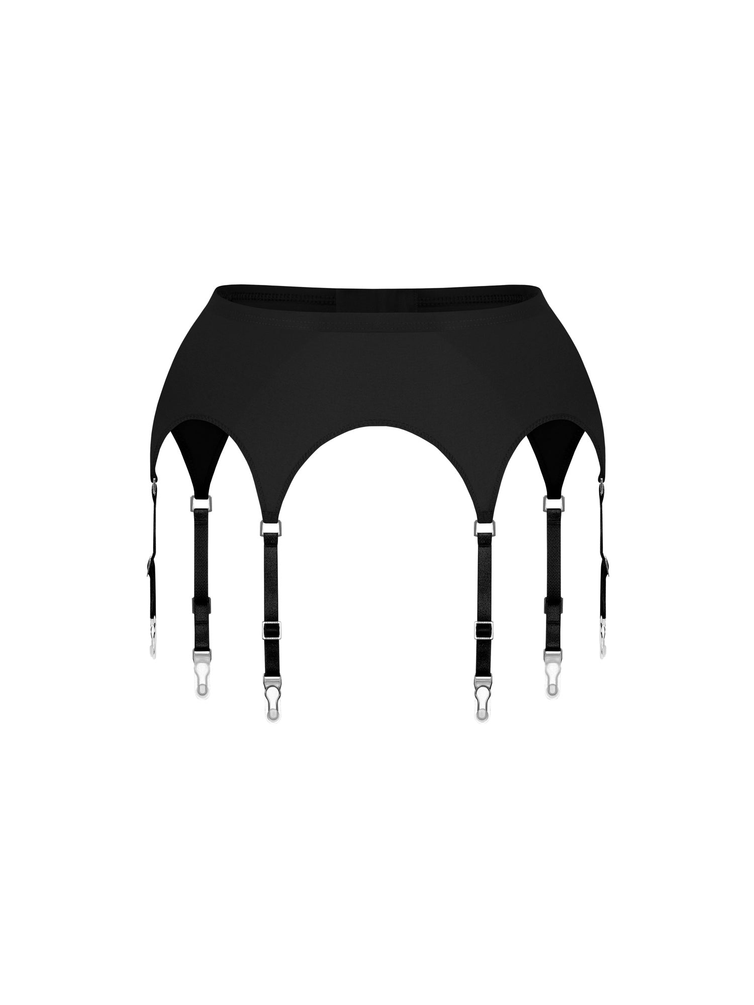 Klasyczny pas do pończoch wykonany z elastycznej najwyższej jakości tkaniny typu stretch, mikrofibra, zapinany z tyłu na klasyczne haftki z trzema poziomami regulacji.
