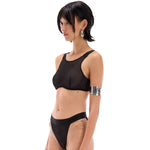Biustonosz wykonany z najwyższej jakości, miękkiej siateczki w delikatny prążek.