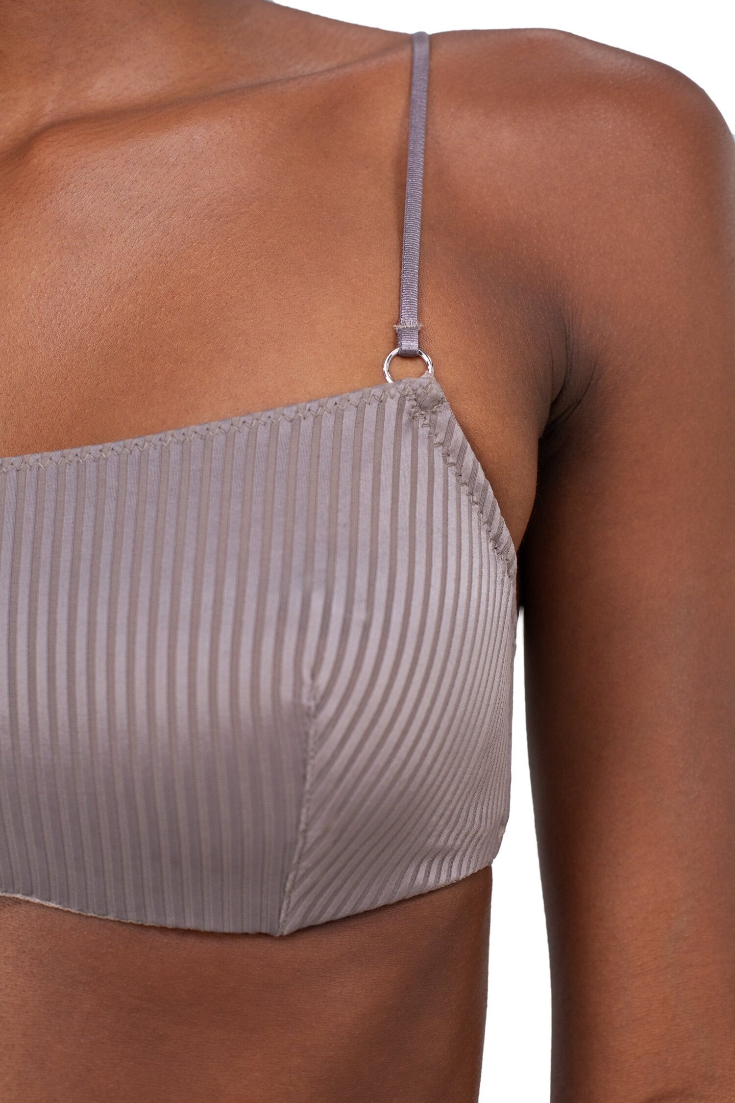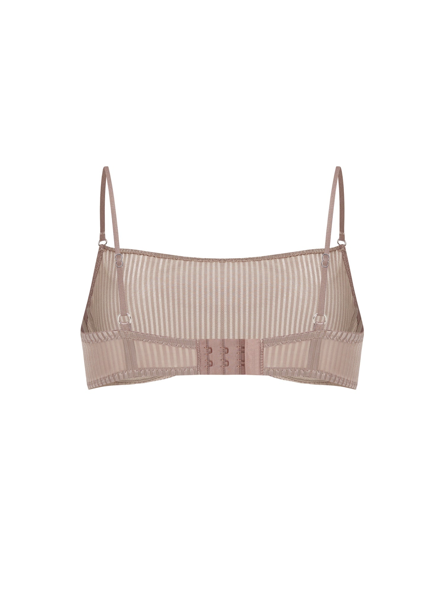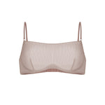 Biustonosz wykonany z najwyższej jakości, miękkiej siateczki w delikatny prążek. Wyjątkowy odcień szaro–beżowy nadaje mu subtelnej elegancji i sprawia, że doskonale komponuje się z różnymi stylizacjami.